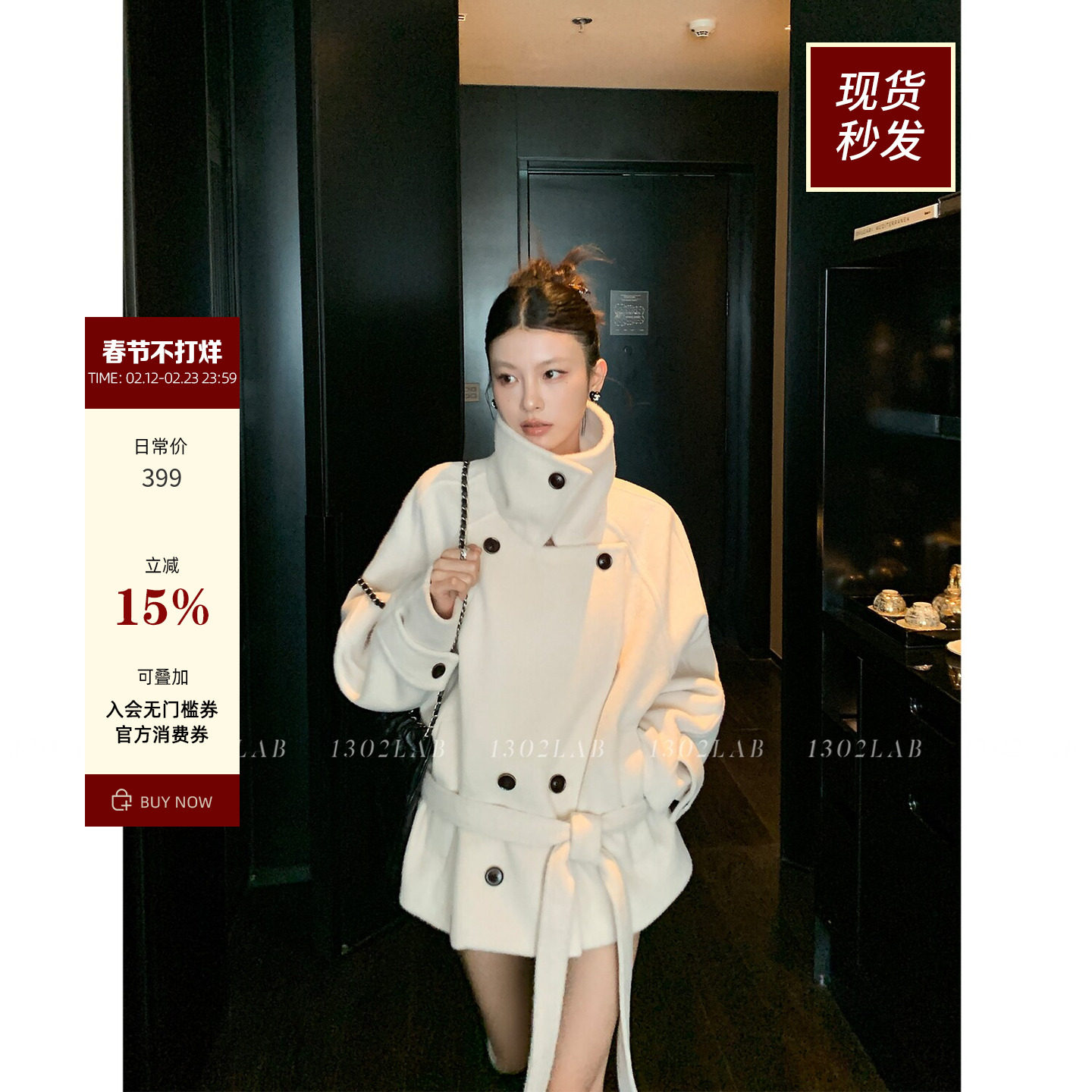 [Dong Xuan same style] REWEAR/70 wool construction silhouette windproof belt short woolen coat 11288