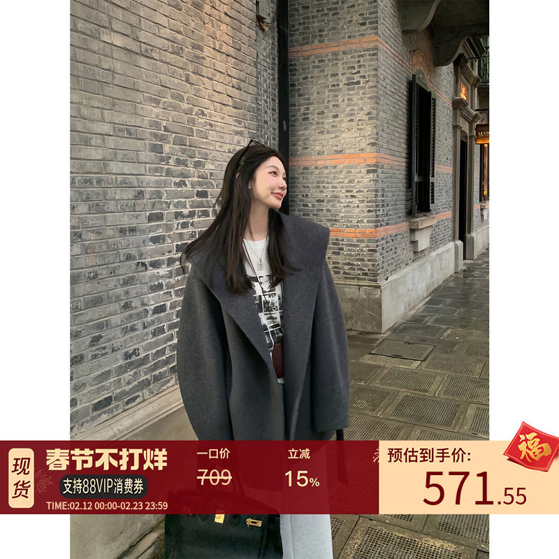 Mere Ouyang wool reversible woolen coat women's winter small short woolen loose hooded woolen jacket