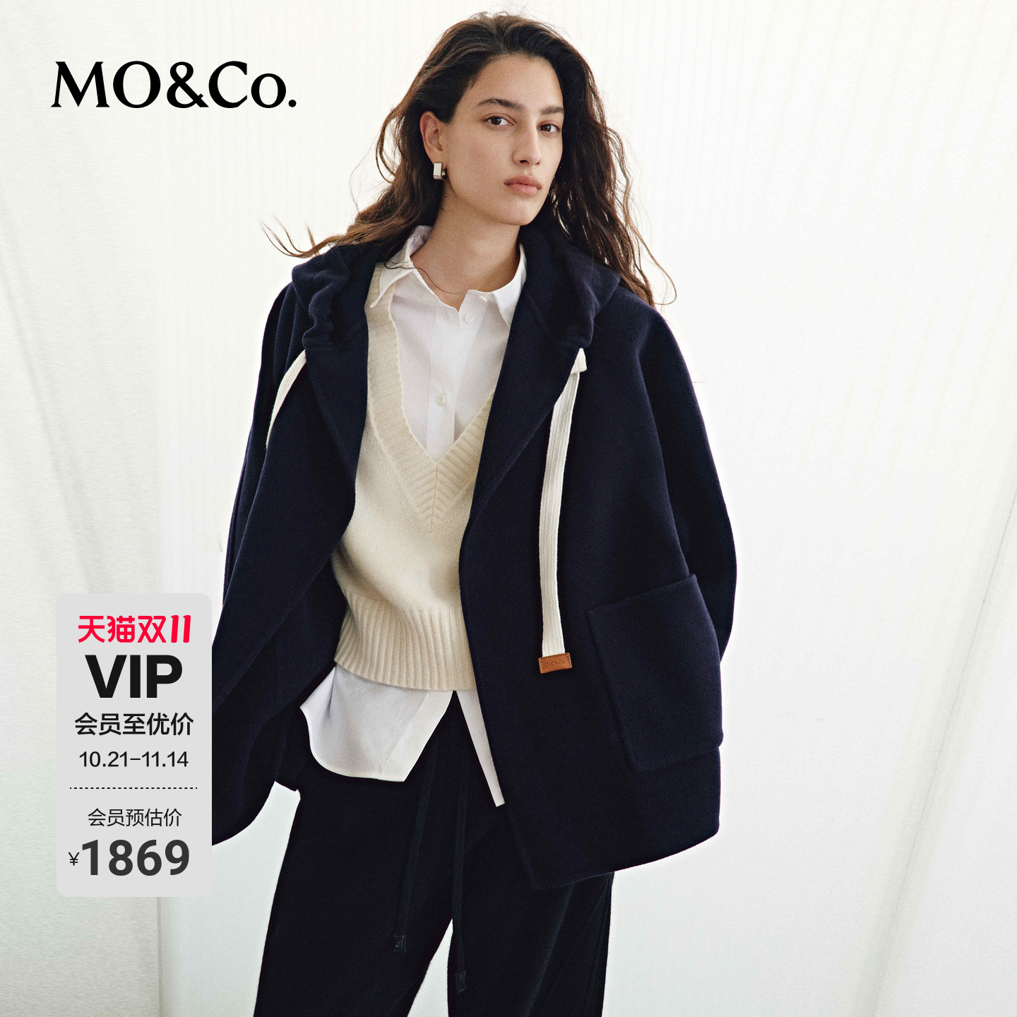 MOCO coat 2025 autumn new merino wool reversible wool hooded boxyfit cocoon MBE3OVCT02