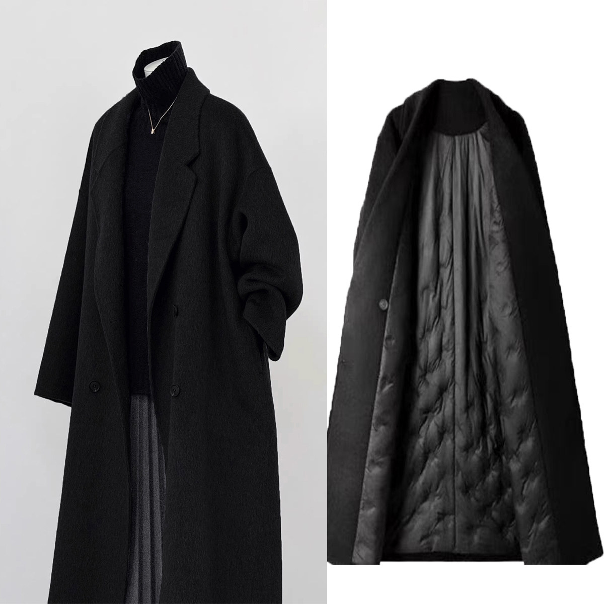 Tall black reversible wool coat women's elongated version 2025 winter down jacket liner thickened woolen jacket