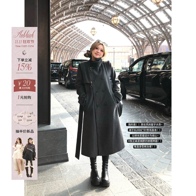 Anne is not popular Gray is a double-breasted woolen jacket for women's 2025 fall/winter new chubby plus-size tweed coat
