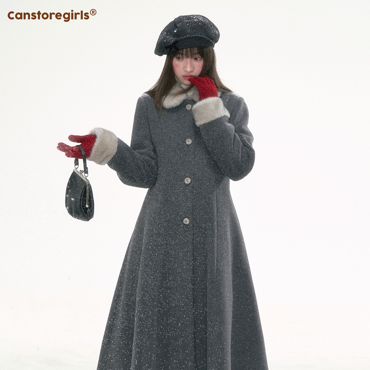 Canned store 'Moscow Haze' rose buckle waist golden style wool gray woolen coat