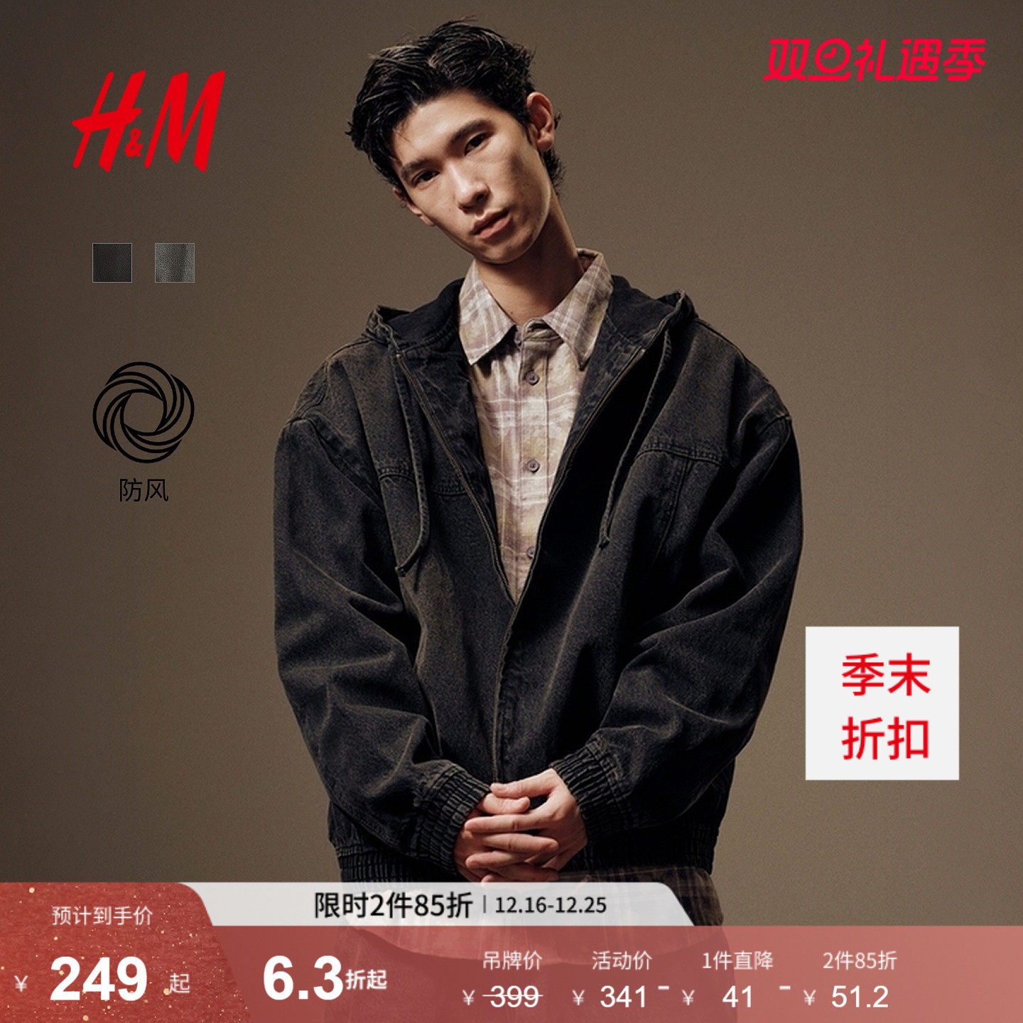 HM Men's Denim Jacket Winter 2025 New Loose-Fit American Trendy Hooded Jacket 1300912
