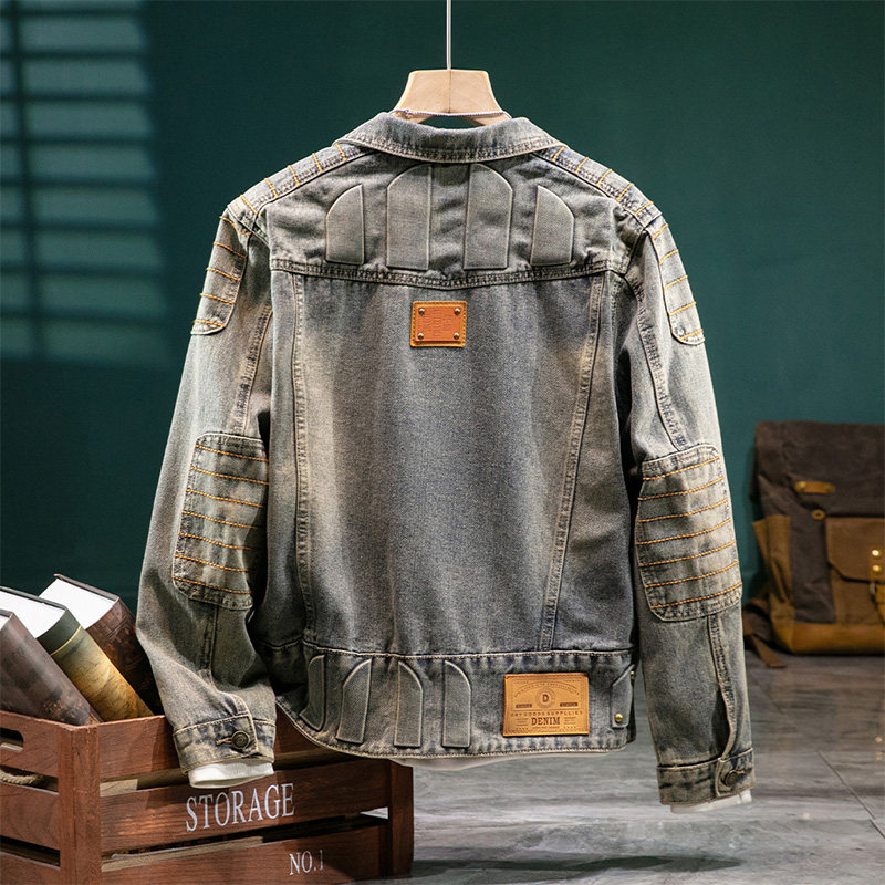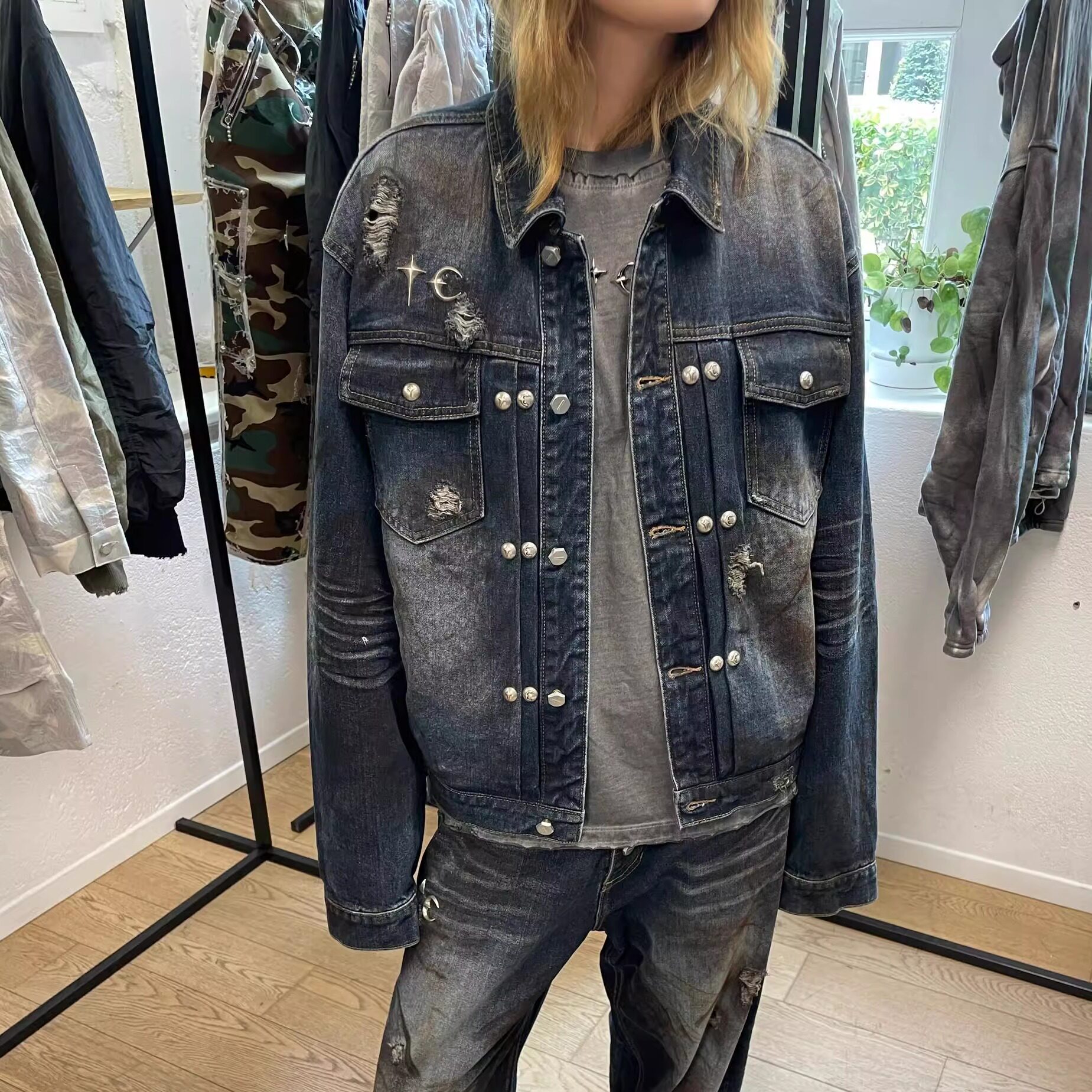 Thug club niche vintage mud dyeing brush wax denim jacket washed distressed wasteland style studded jacket