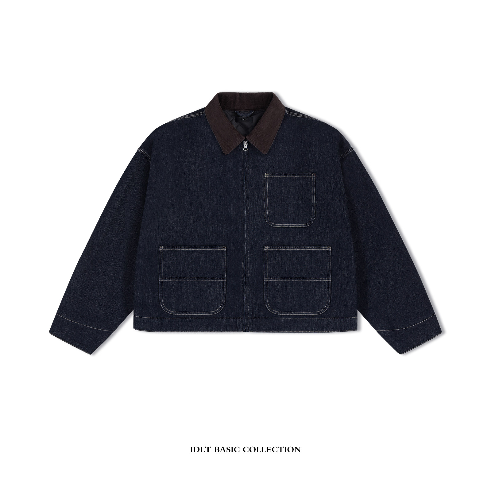 IDLT Short Width Cargo Jacket Lyocell Primary Denim Silhouette Loose Multi-Pocket Lapel Jacket European and American Trend