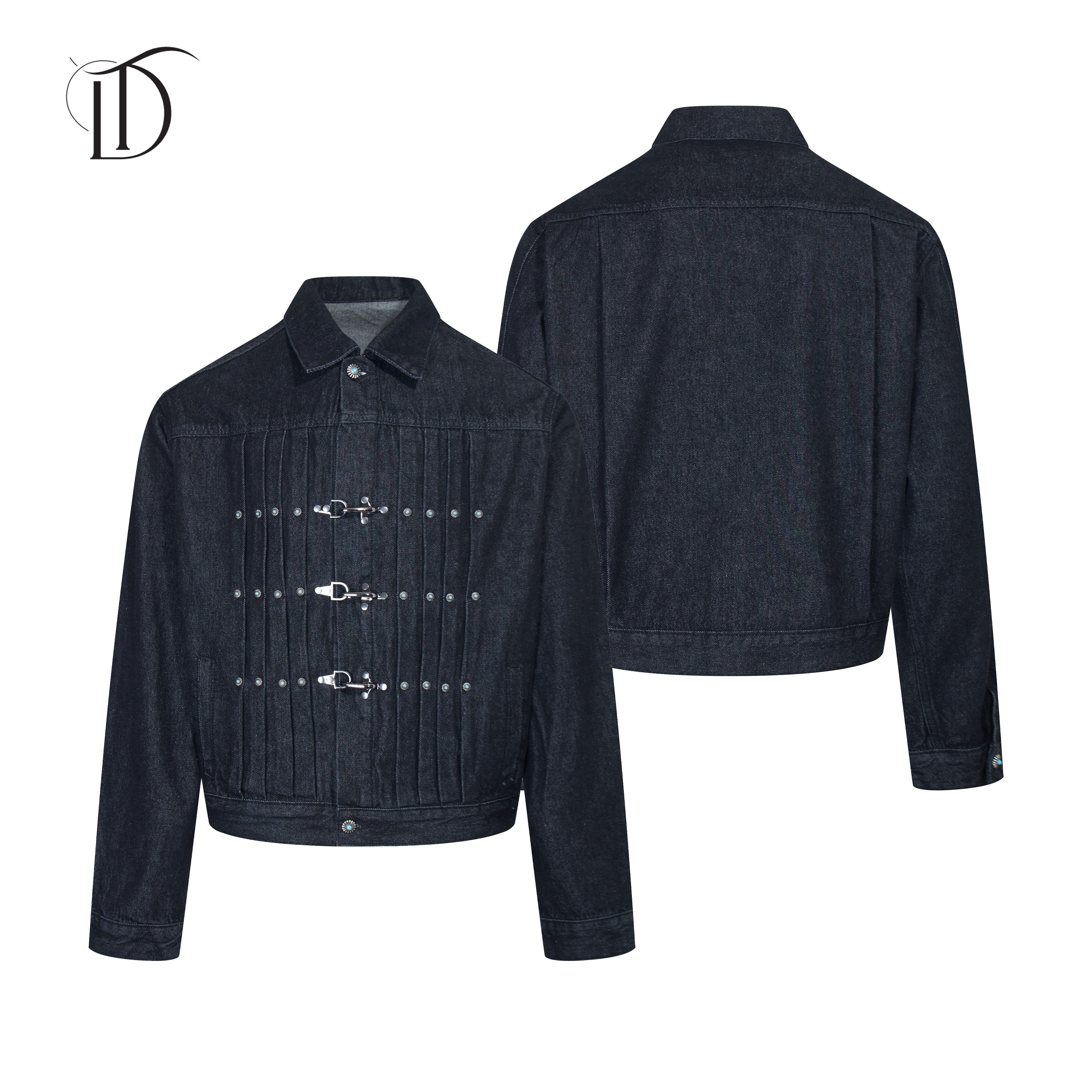 DT25FW/"Peacock Blue" gemstone denim cow airplane buckle jacket jacket