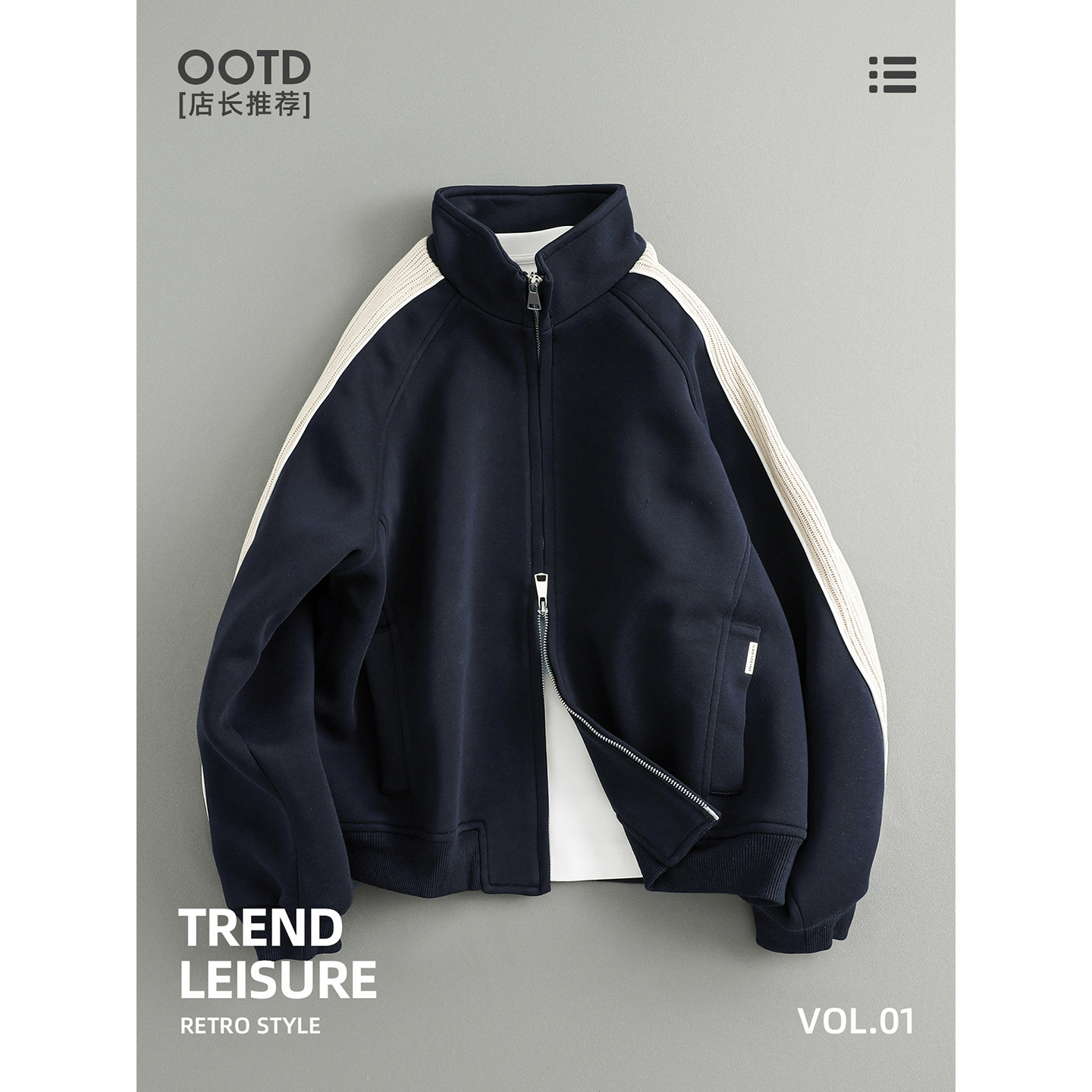 Spring Japanese casual trendy brand simple sports versatile loose patchwork contrast stand-up collar zipper jacket men