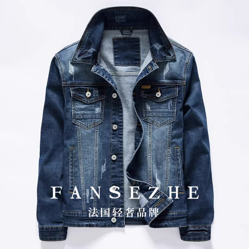 FANSEZHE丨French light luxury brand丨Men's denim jacket autumn and winter fashion loose casual washed jacket