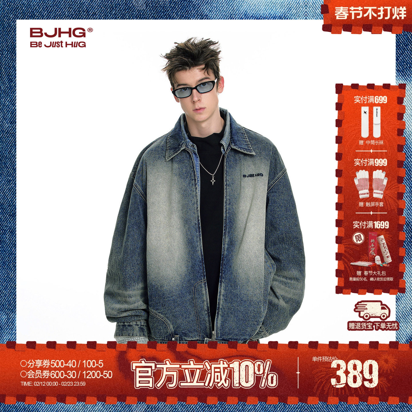 BJHG reckless denim jacket men's winter trendy shirt loose American vintage washed high street jacket women