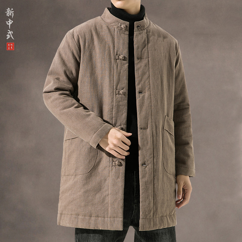 New Chinese winter thickened and warm mid-length Tang clothing cotton jacket Chinese style disc buckle retro tunic casual padded jacket