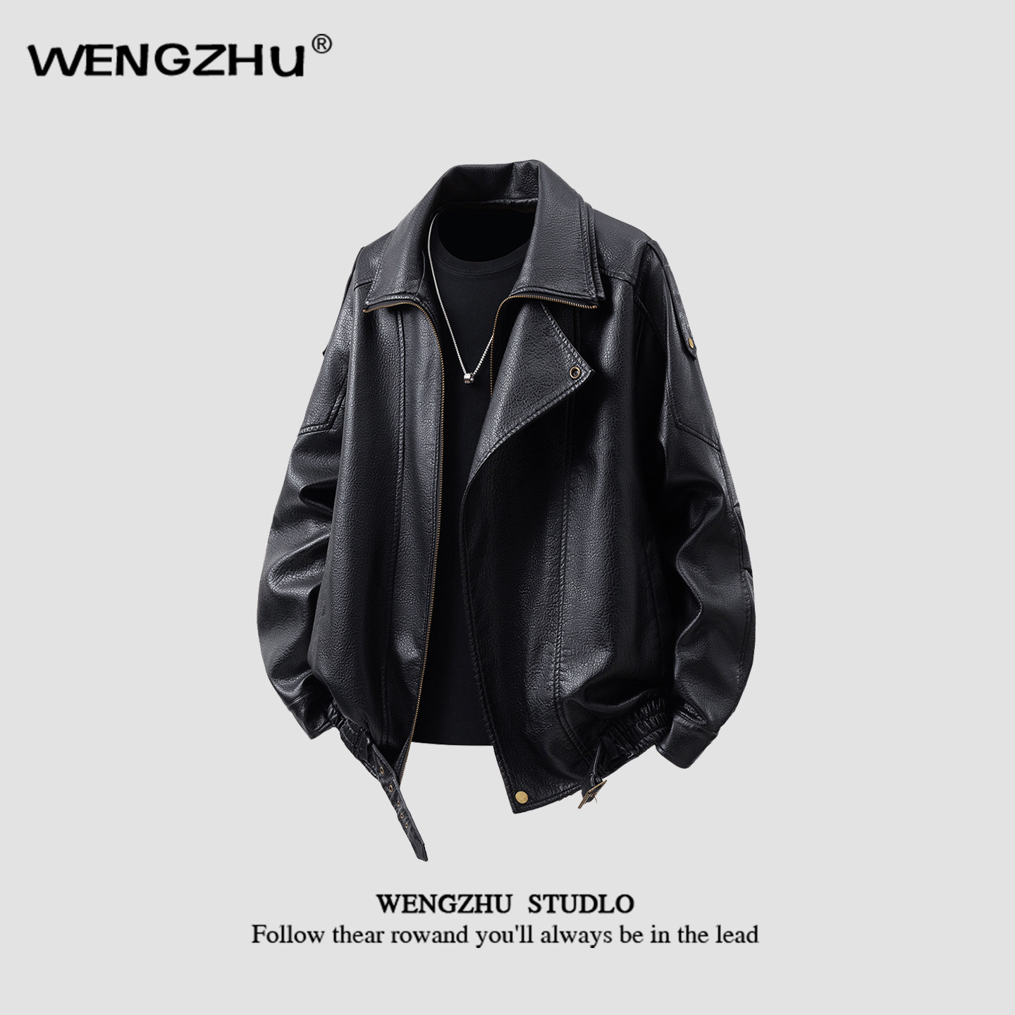WENGZHU "Designer Brand" / Unisex / High-end American Retro PU Leather Jacket Loose Jacket Trend