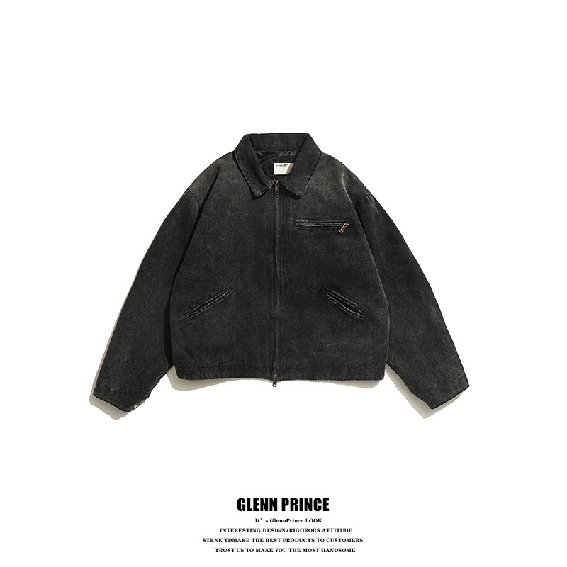 GPstudio American Vintage Zip Pocket Cropped Lapel Denim Jacket Men's Fall Ruffian Handsome Detroit Jacket