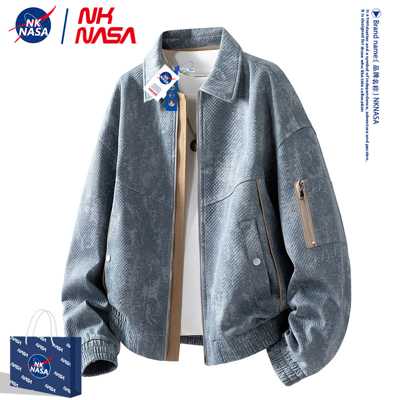 NK NASA co-branded tie-dye lapel denim jacket men's 2025 new autumn versatile plus-size loose top