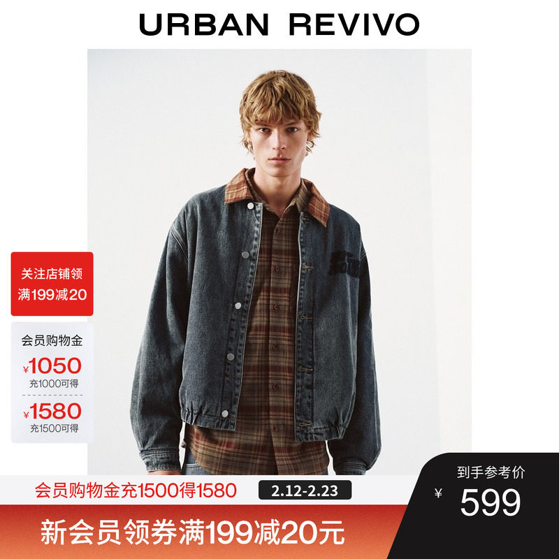 UR2025 Fall 2025 New Men's Fashion Casual Patchwork Plaid Collar Denim Jacket UUV850054