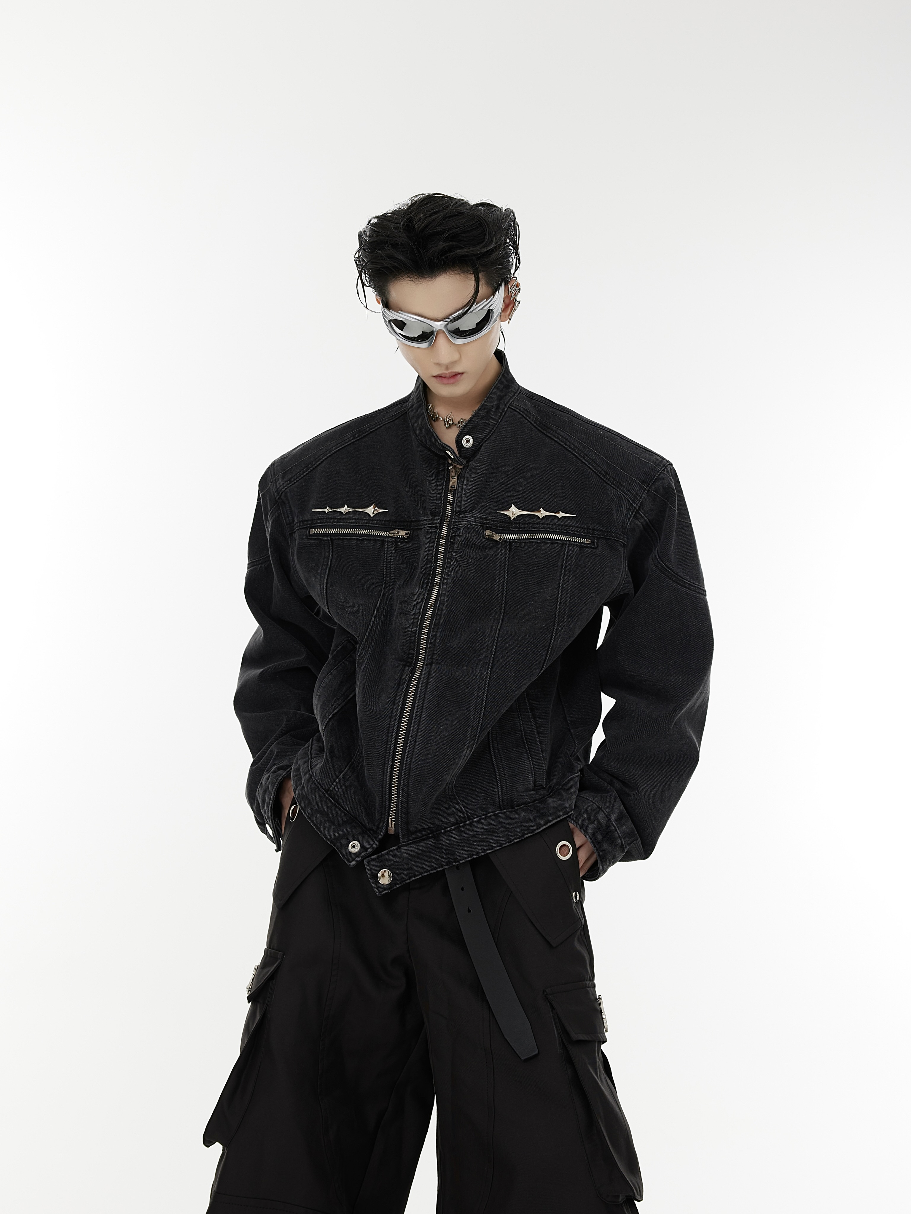 Lil Monster's new washed denim jacket is a distressed American spring and autumn trendy loose cargo cotton jacket