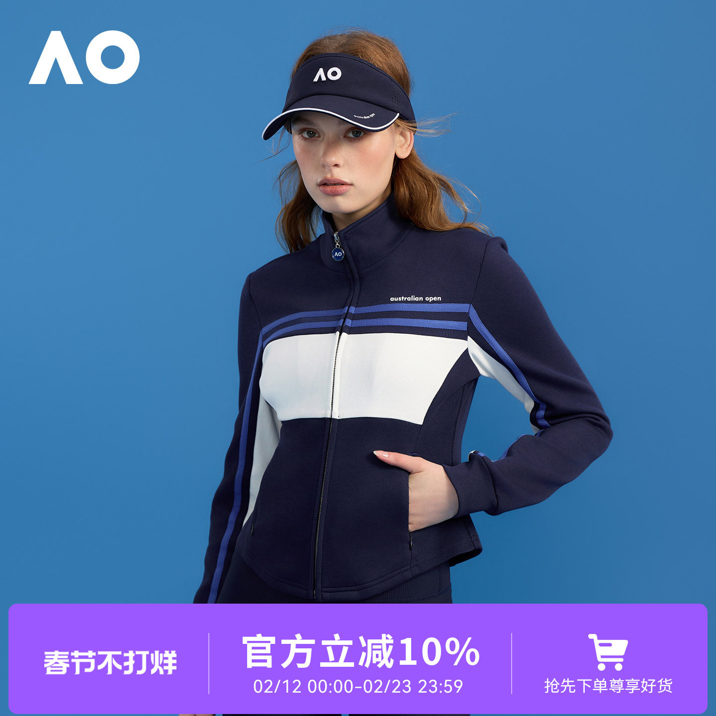 AO Australian Open sportswear casual sports stand-up collar jacket contrasting slim new jacket for women
