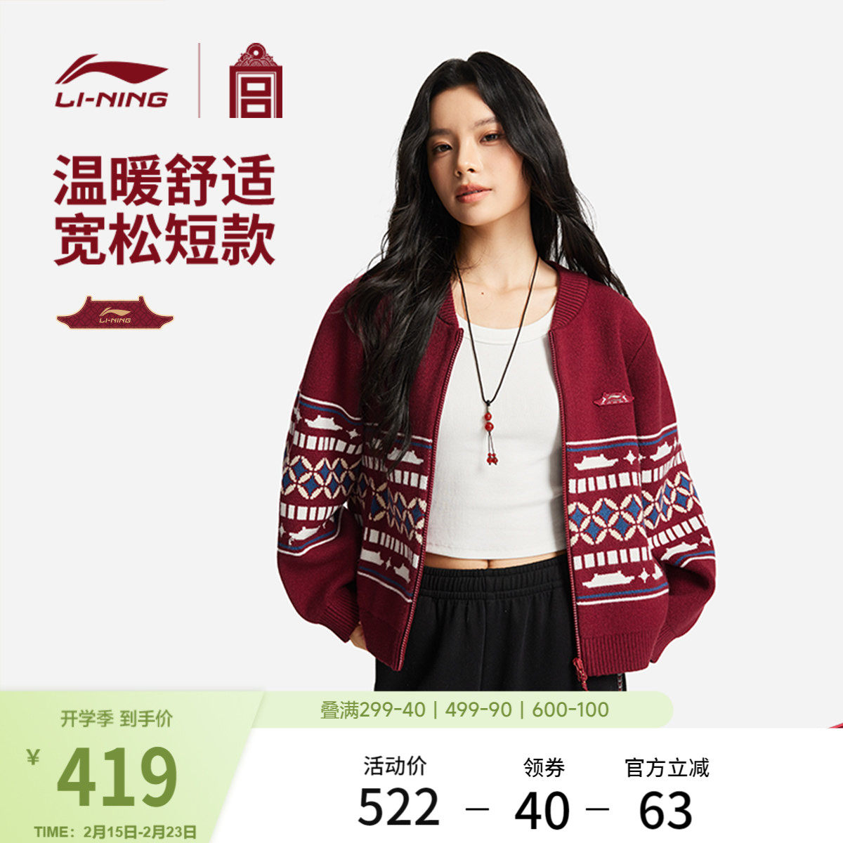 Li Ning Forbidden City co-branded sweater women's spring 2026 new New Year red casual knitted shirt Year of the Horse sportswear