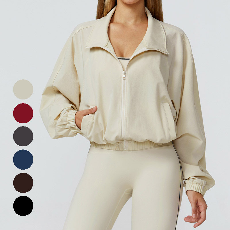 European and American quick-drying stand-up collar sports jacket women's zipper windproof outdoor running fitness long sleeve yoga wear jacket pocket