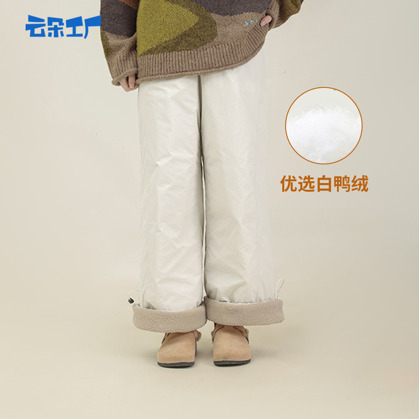 Cloud Factory Little Snowman Plush Cuffed Down Pants Winter High Waist Thickened Warm Pants Winter New Style