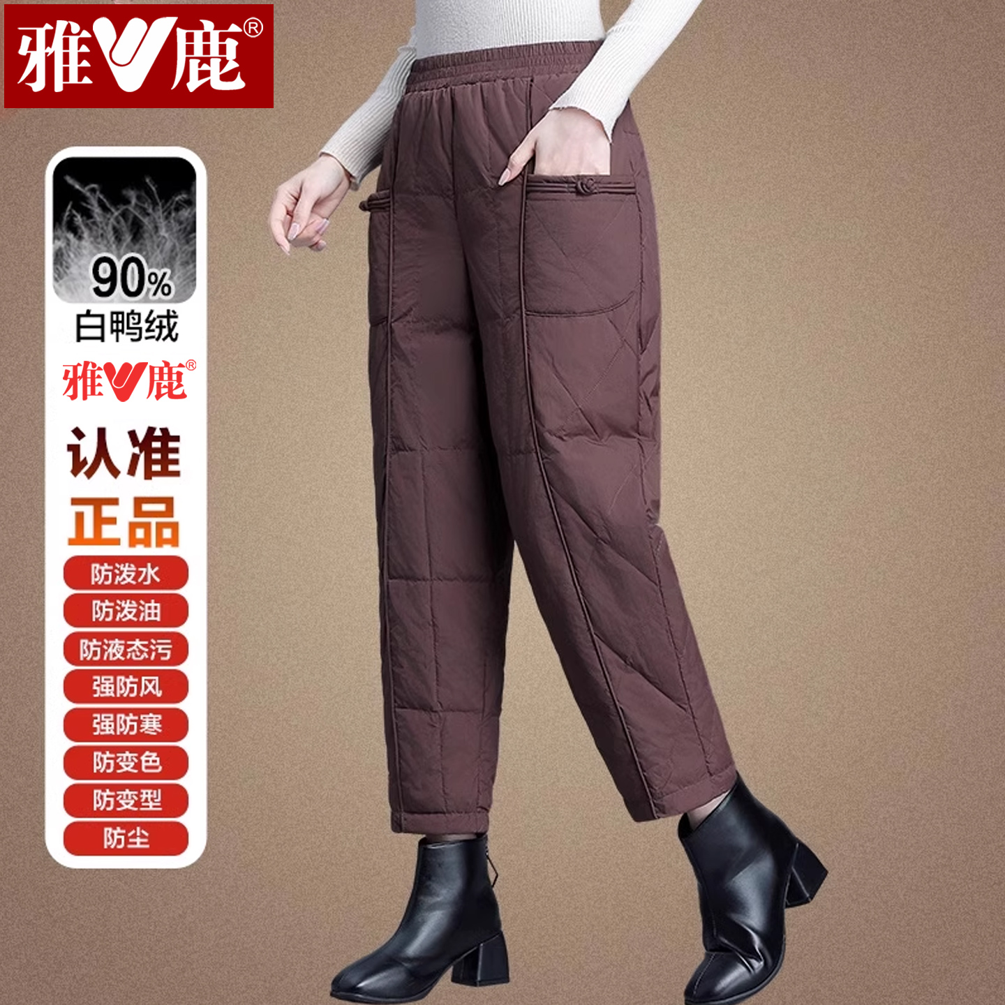 Yalu brand mother winter down pants middle-aged and elderly women's foreign high-waisted warm straight-leg cotton pants are new to wear