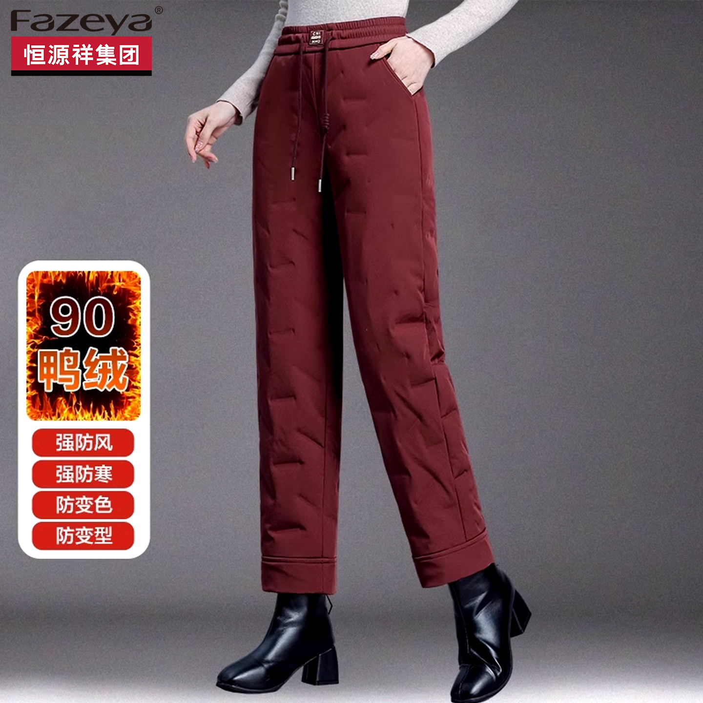 Hengyuanxiang Group Colorful Sheep Straight Down Pants Women's Fashion Wears High-Waisted Winter Mother Thickened Cotton Long Pants