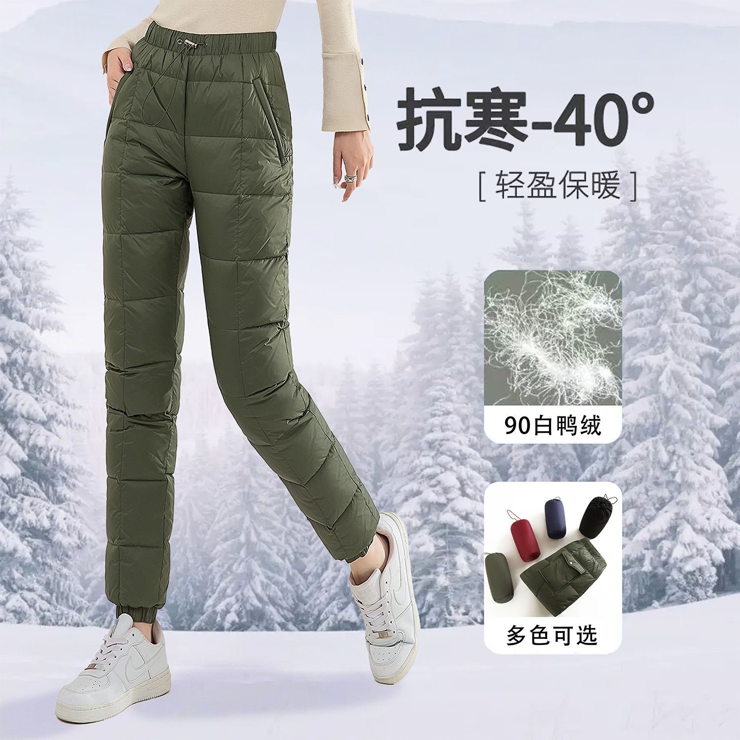 Flying goose down pants in the snow women wear new thickened cotton pants, plus-size slim-fitting high-end down pants, warm pants, and warm pants in winter