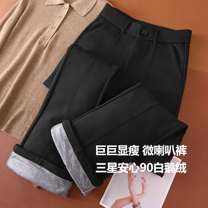 The giant looks thin! Leg essence three-star peace of mind 90 white goose down high-waisted bootcut pants show leg straight warmth winter trousers for women