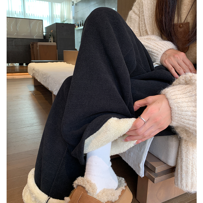 Wear cotton pants for women in winter with thickened fleece and Northeast winter women's elongated tall women's pants for autumn and winter wide-leg pants