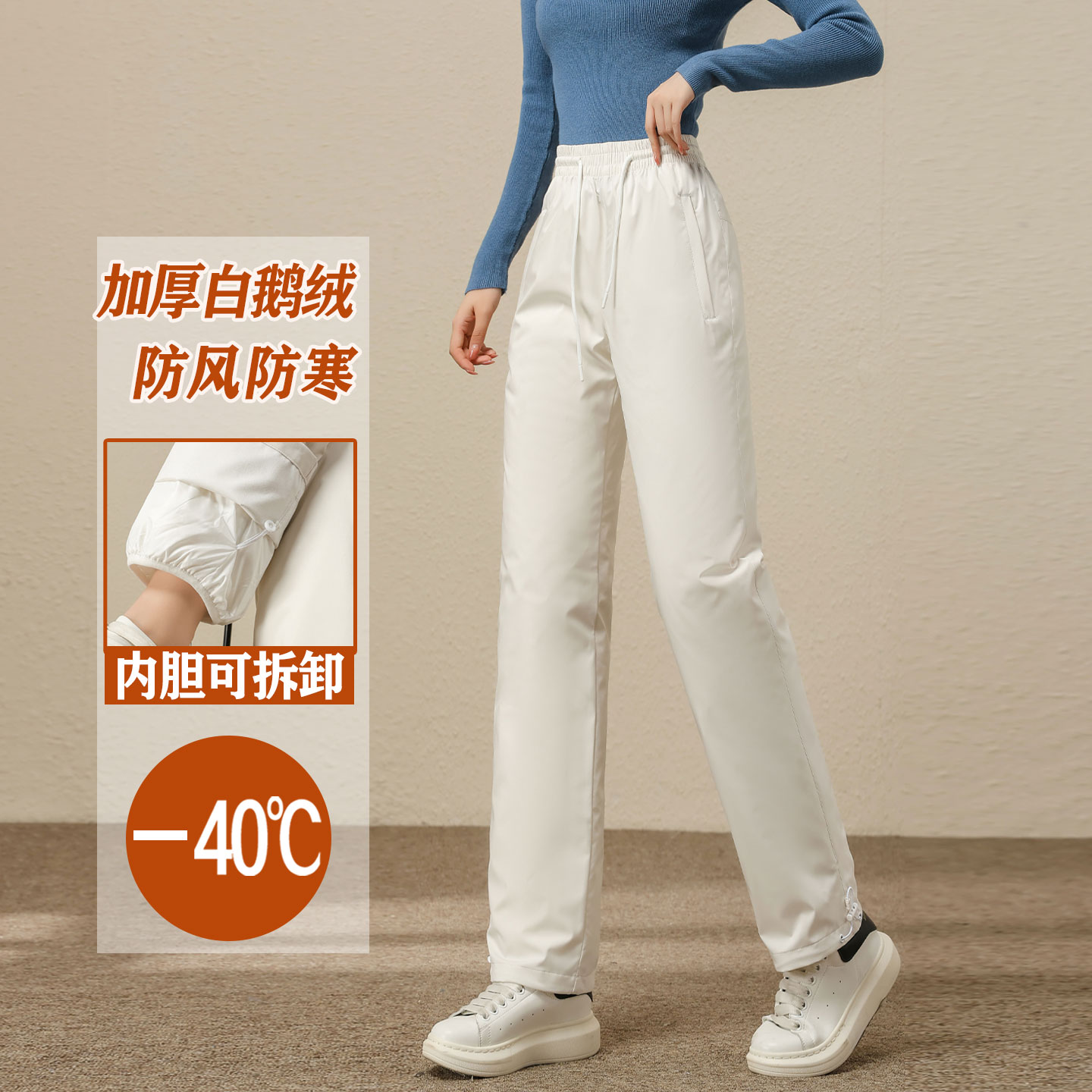 2025 new down pants women's outerwear fashionable high-waisted straight-leg Northeast Harbin cold-proof windproof and warm goose down pants