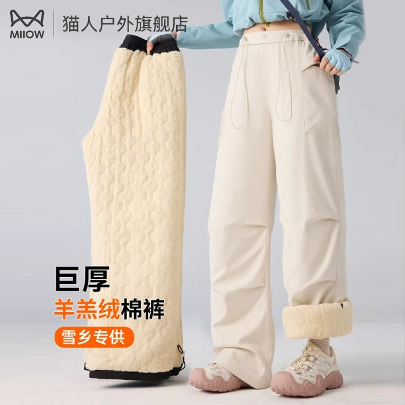 Cat Man Northeast Harbin Mohe Charge Coldproof Cotton Pants Men's and Women's Windproof Waterproof Lamb Wool Thickened Ski Pants