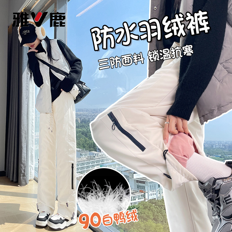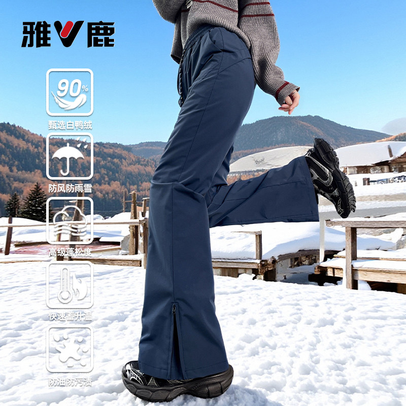 Yalu waterproof down pants, women wear 2025 new winter cold and warm bootcut LULU pants, Harbin skiing