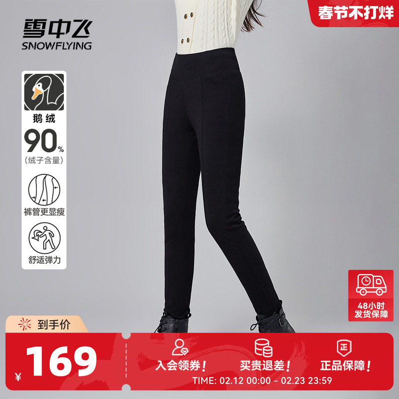 Fly in the Snow 2026 Fall/Winter New Women's Goose Down Pants Far Infrared Heat Storage Knee Pads Slim Slim Warm Black