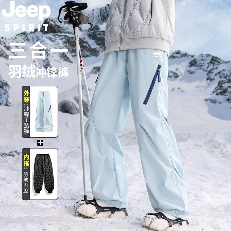 JEEP Outdoor 3-in-1 Down Jacket Pants for Men and Women Winter Cold-proof Removable Liner Mountaineering and Skiing Cargo Pants