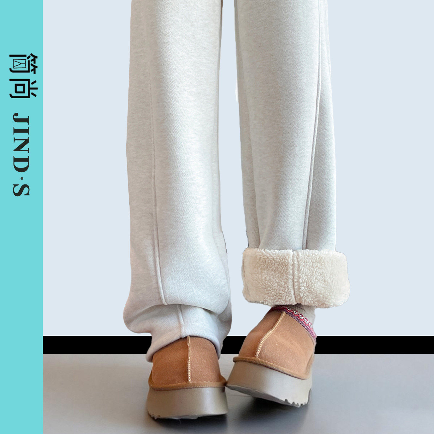 Extended lambswool cotton pants, women's autumn and winter warm and cold-proof wide-leg pants, new fleece Northeast winter thickened straight-leg pants