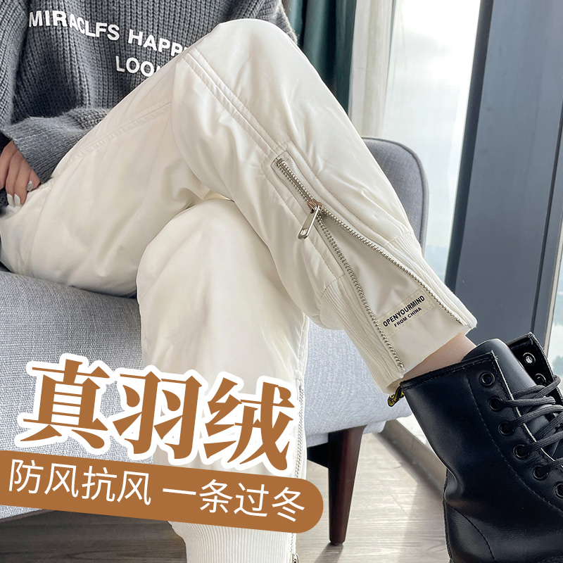 Down pants, women wear high-waisted thickened white duck down inside and out, fashionable, loose, casual, slim, slim, and slim Northeast winter cotton pants