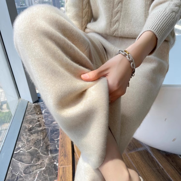 Thickened wool wide-leg pants women's loose thickened autumn and winter straight drape cashmere white casual stretched pants