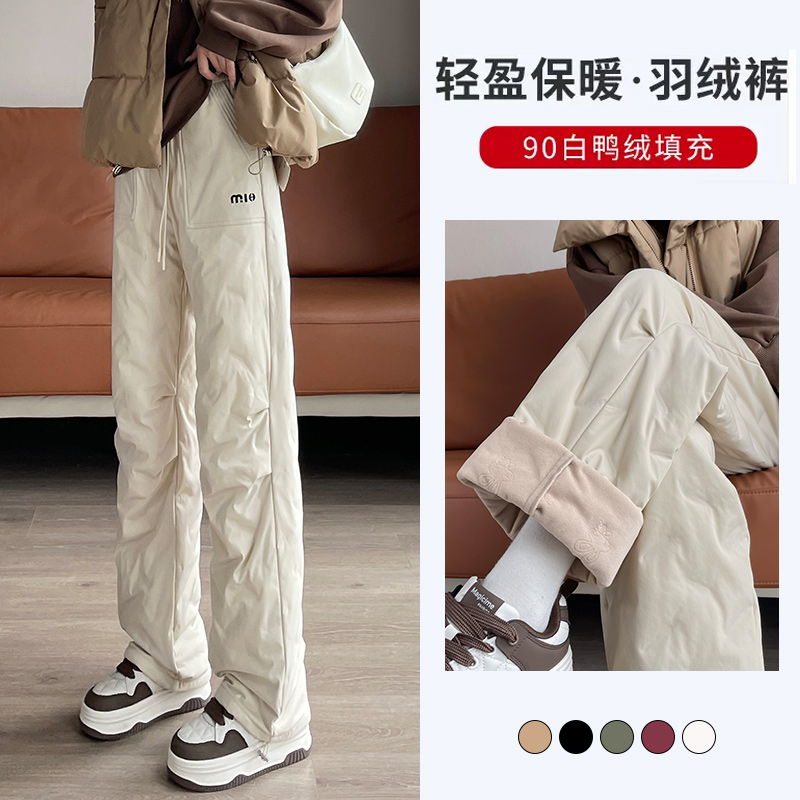 Ma Lin's new winter long-staple cotton brocade blend texture and pleats 90 white goose down thickened warm down pants