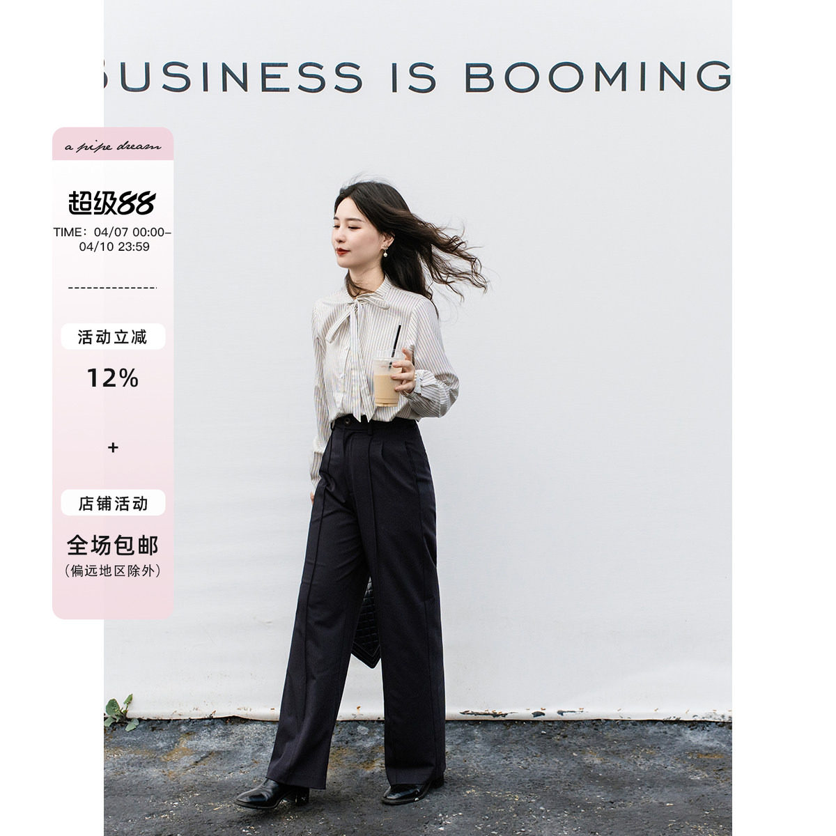 apipedream like a dream, deep navy blue wool high-waisted twill loose temperament trousers TR pants/autumn wind night walk