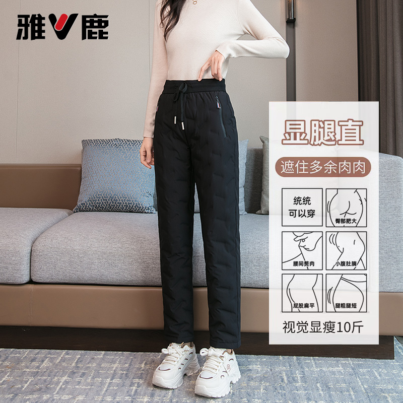 Yalu down pants women wear 2025 new fashionable and popular winter thickened high-waisted warm and cold-proof straight cotton pants