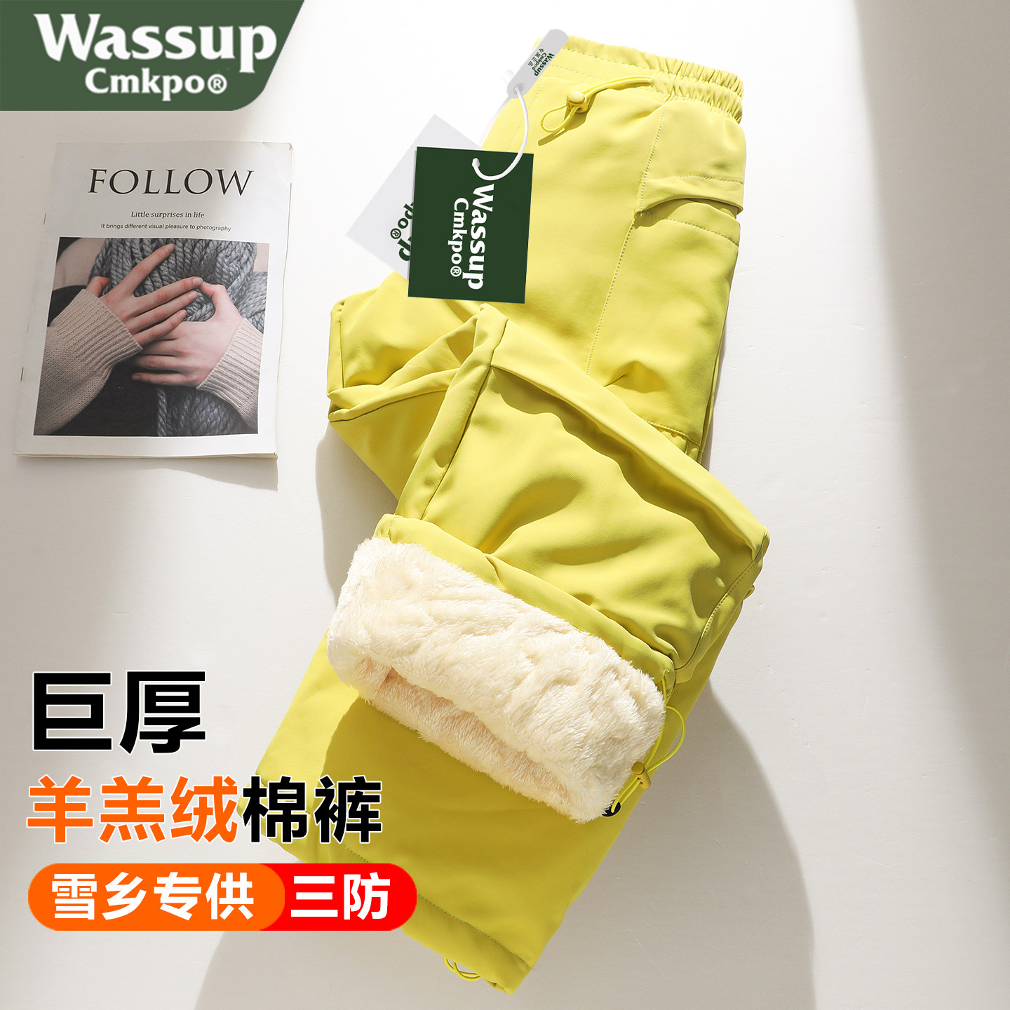 WASSUP CMKPO huge thick lambswool cotton pants for men and women wear the new cold-proof ski pants in winter for men and women