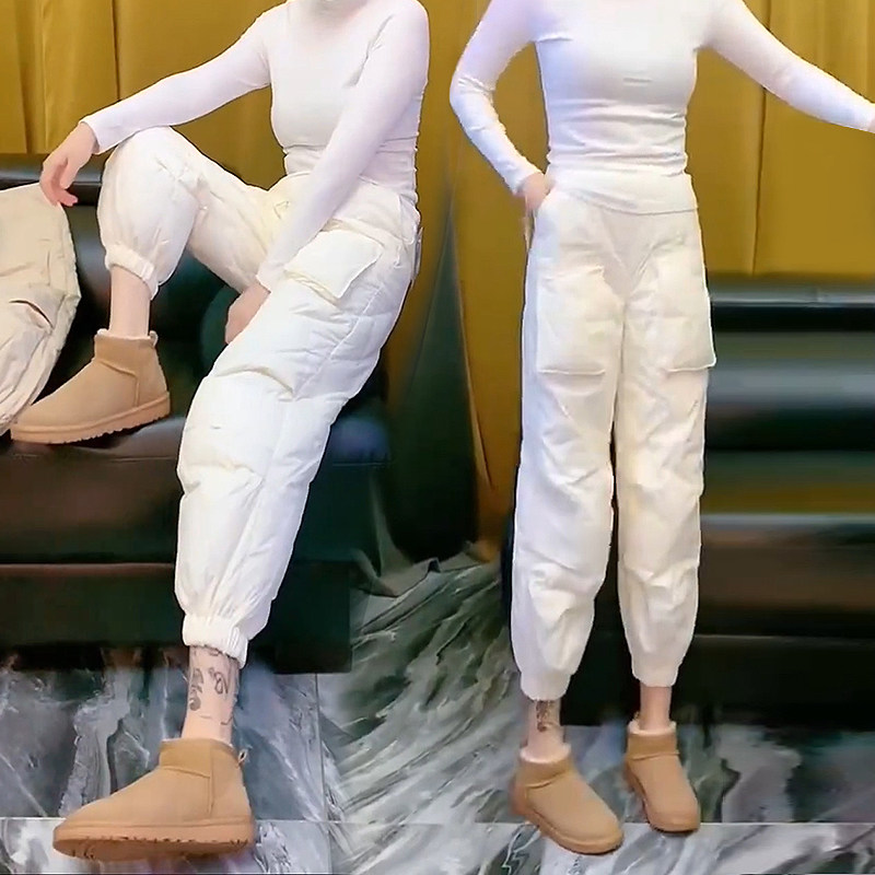 Clearance and leakage ~ high-end down pants women's winter loose and slim European casual cropped pants small cotton pants