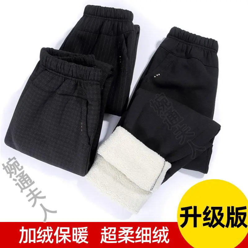 Middle-aged and elderly women's pants, autumn and winter trousers, mother's fleece, thickened high-waisted warm cotton pants, grandma straight outside