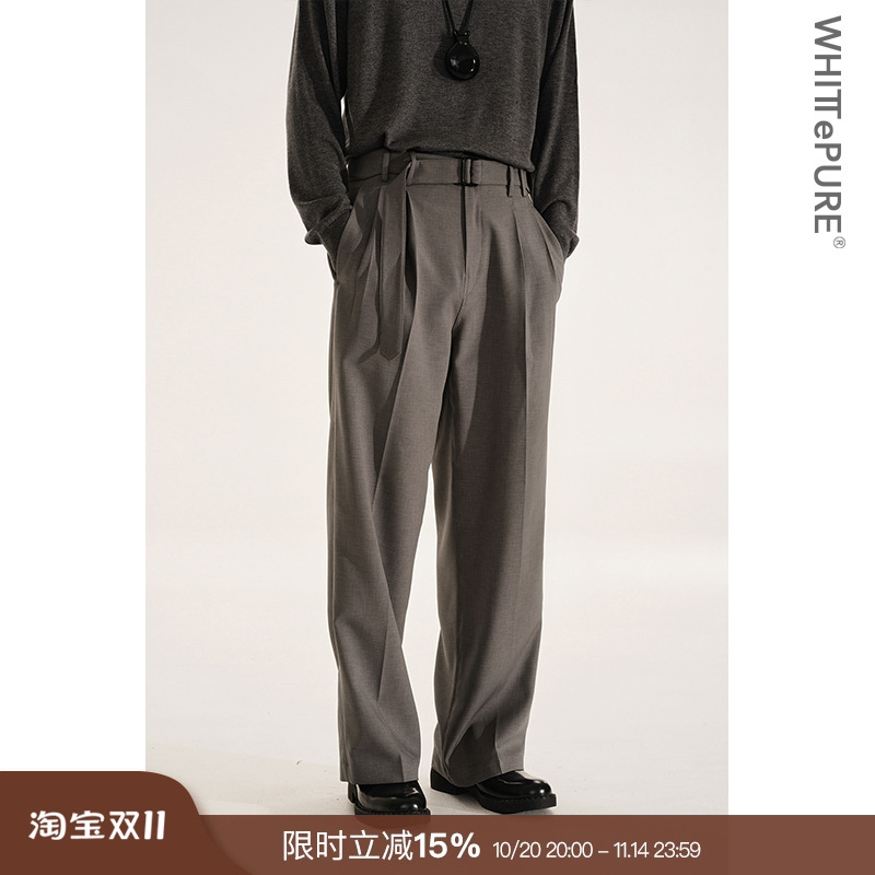 OSENS100% high count worsted wool old money wind back elastic waist commuter straight wide-leg casual trousers men's autumn
