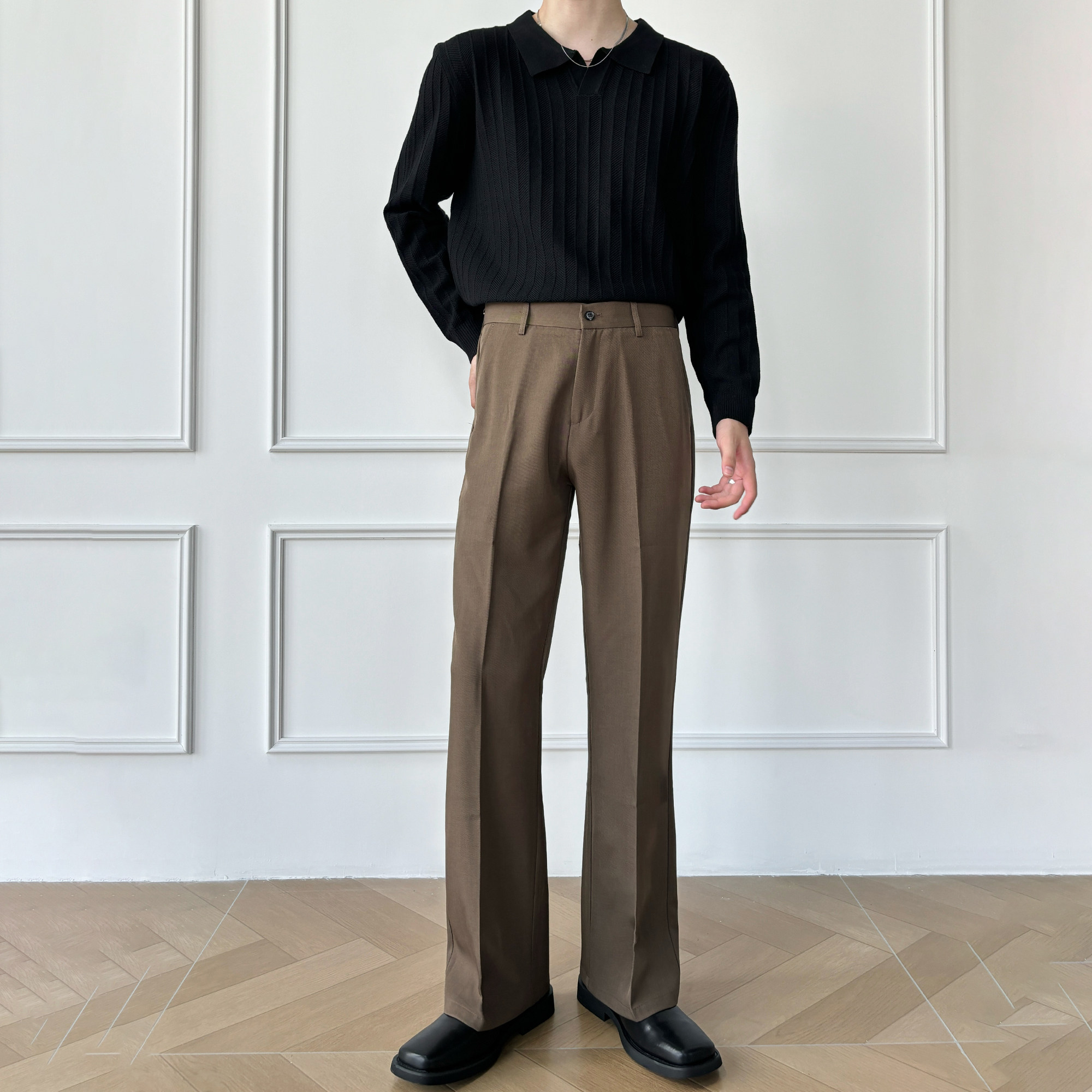 Men's sheng autumn and winter old money style high-waisted slightly flared trousers drape sense of luxury Slightly loose and slim brown trousers