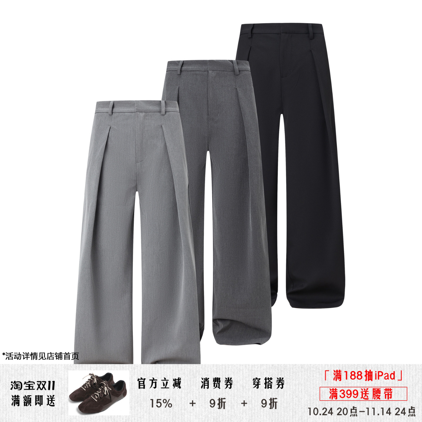 it:CHOCOOLATE draped nine-point trousers men's autumn new straight-leg loose casual commuter pants