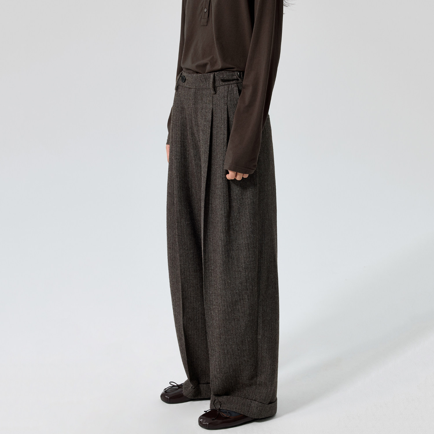 TURNTIDE Three-dimensional A-line silhouette double-pleated scimitar trousers loose commuter cleanfit summer casual trousers