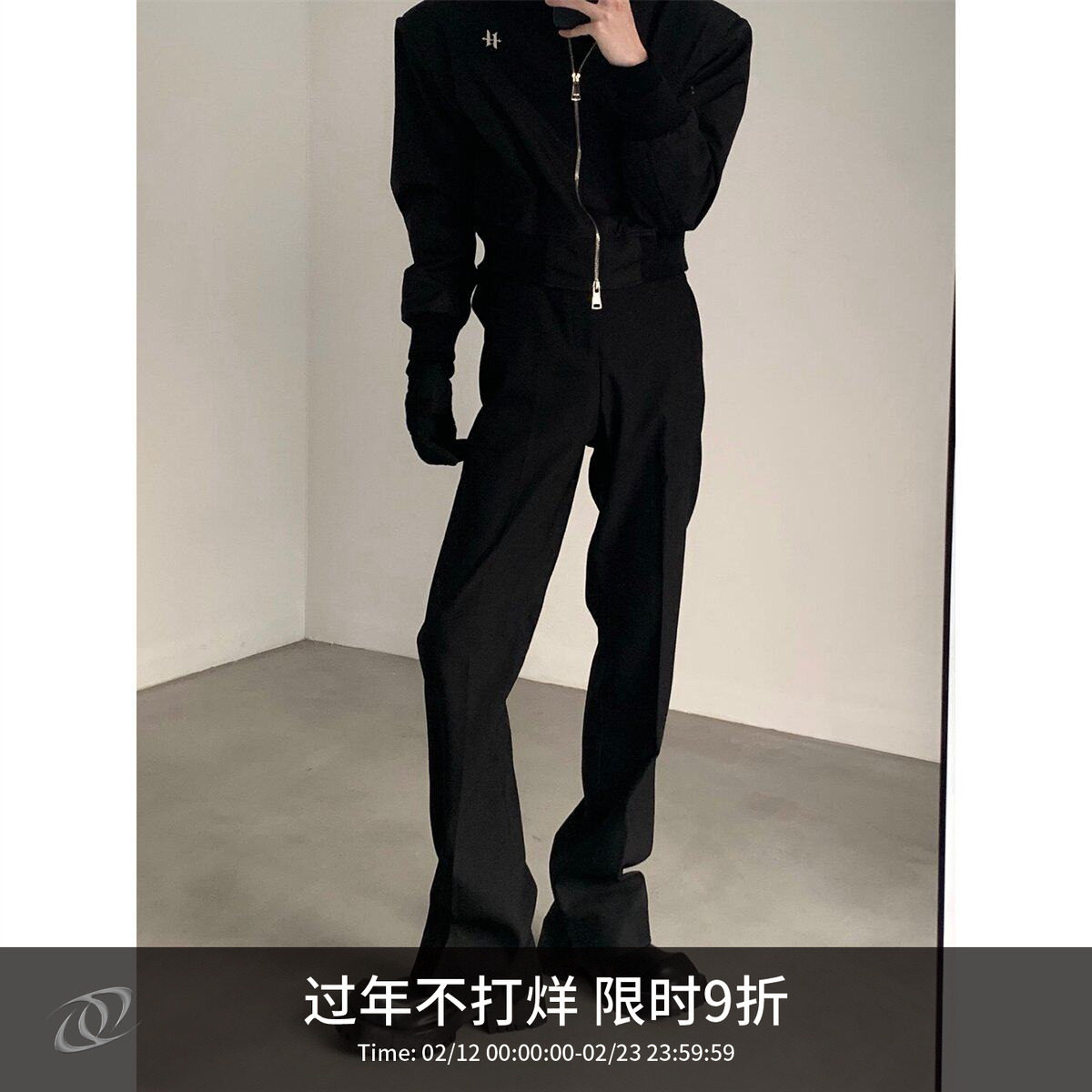 The crooked side of the CORN diagonal placket strap loose suit pants is good to look fashionable, and it does not have to happen in the center