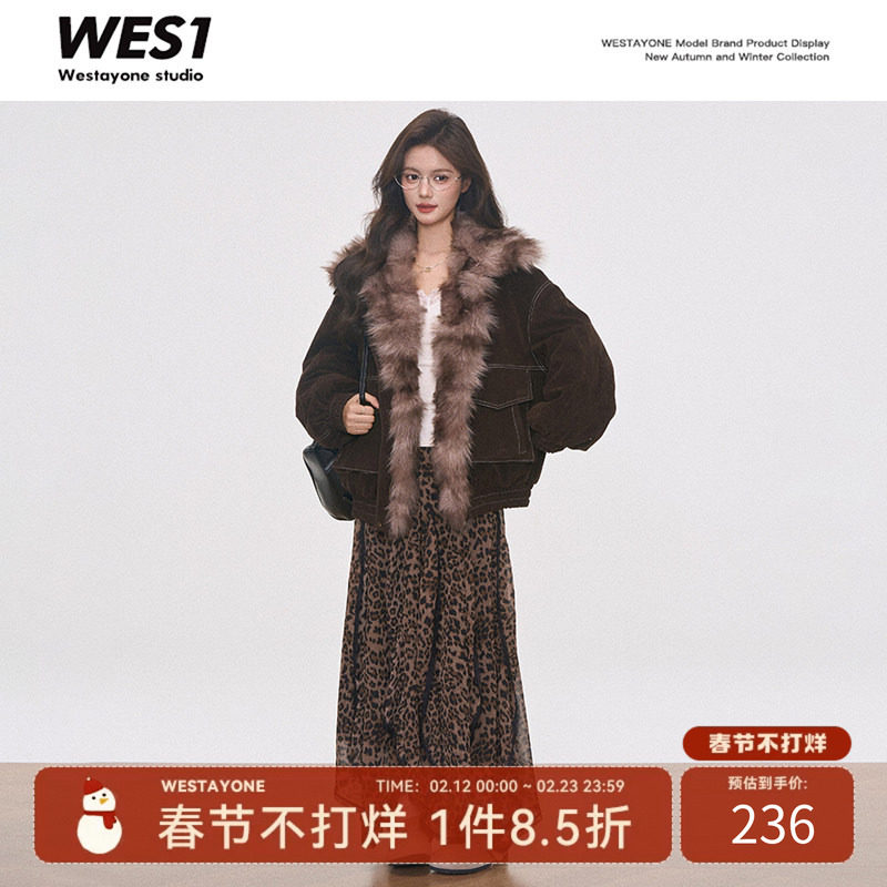 11.6 New product WESTAYONE coffee suede fur splicing cotton jacket thick fur integrated + leopard print long skirt
