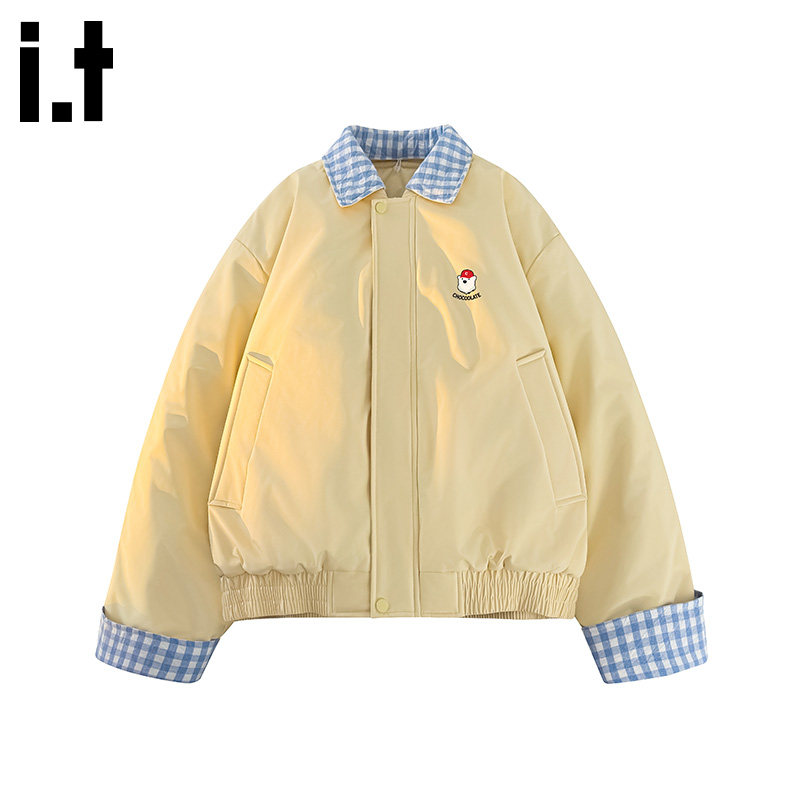 it :CHOCOOLATE fake two-piece cotton jacket women's winter plaid splicing short cotton jacket thickened warm jacket