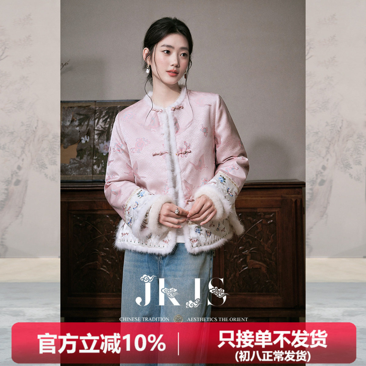 JKJS [Cloud Edge Butterfly] human silk jacquard padded jacket buckle thickened cotton clothes new Chinese winter wool cotton jacket